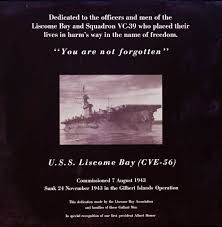 William was KIA when the USS Liscome Bay was sunk by the Japanese Sub I-175 on Nov. 24, 1943, he is honored with a Purple Heart, Combat Action Ribbon, Good Conduct Medal, Expeditionary Medal, American Campaign Medal, Navy & Marine Presidential Unit Citation, Asiatic-Pacific Campaign Medal, WW II Victory Medal.