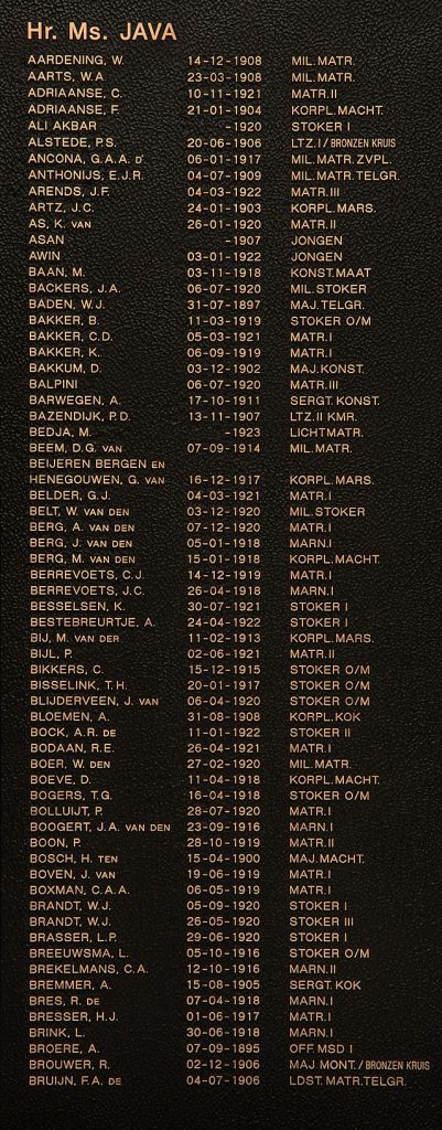 Tijdens de Slag in de Javazee verliezen zo’n 2.300 geallieerde marinemannen het leven, onder wie ongeveer 900 Nederlanders.