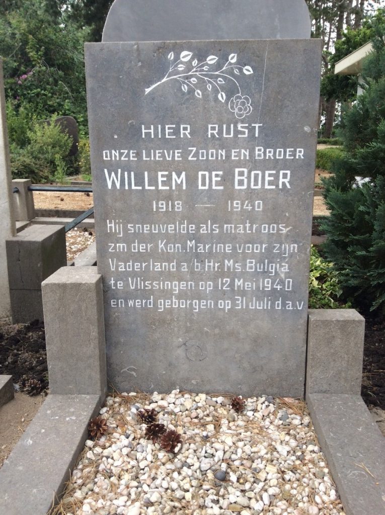 Bij het Duitse bombardement op de Hr.Ms. Bulgia kwamen de volgende dertien militairen om het leven: bediende zeemilicien F. Dijks, stoker zeemilicien H. Eenkooren, kok zeemilicien F.C. Kaandorp, stoker zeemilicien C.W. Kuen, stoker 2e klas P. Nouwen, matroos zeemilicien P. Schuitema, stoker 1e klas P. Vader, matroos 3e klas J. de Visser, matroos zeemilicien W. de Boer, matroos 1e klas R. Bothof, stoker zeemilicien H. van Empel, stoker zeemilicien J. Volmer en ziekenverpleger E. Wesselink.