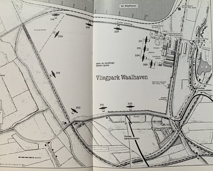 Op 10 mei 1940 werd het vliegveld grotendeels door de Duitsers uitgeschakeld. Een bombardement in de vroegste uren van de inval vernietigde het merendeel van de gebouwen, inclusief de Koolhoven vliegtuigfabriek die al jaren op het vliegveld was gevestigd. Tevens vond een tragedie plaats in gebouwen bij de hoofdingang, waar een halve compagnie van de tactische reserve was gehuisvest. De bommenregen op deze sector leidde tot de dood van maar liefst 21 man, het zwaarste enkelvoudige verlies van de strijd om Waalhaven! Het bombardement werd gevolgd door een Duitse parachutisten- en luchtlanding. Ju-52 transportvliegtuigen landden op het vliegveld, botsten op elkaar en werden door Nederlandse soldaten in brand geschoten.