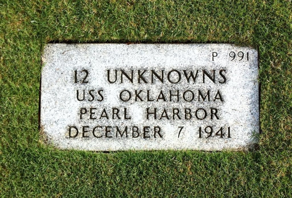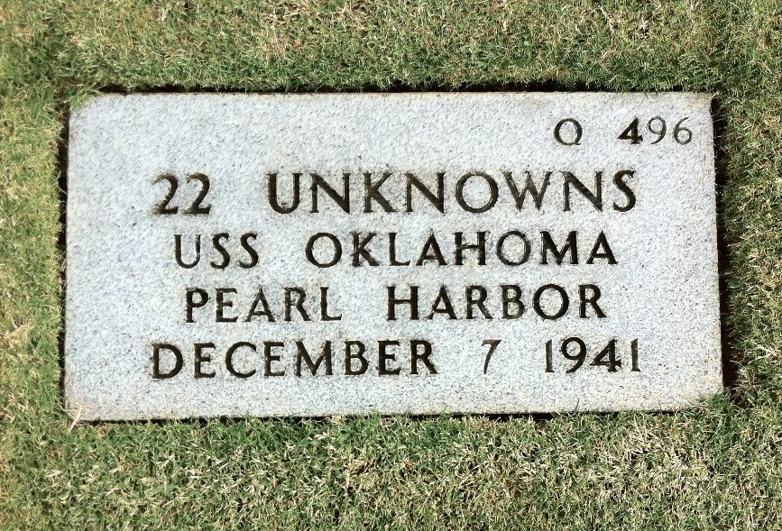 By the spring of 1950, the approximately 390 unknowns from the USS Oklahoma had been buried in the National Memorial Cemetery of the Pacific in sixty-one caskets interred in forty-five Mass Grave locations. Including those dis-interned from the other local cemeteries to be interned all together in the National Memorial Cemetery of the Pacific.